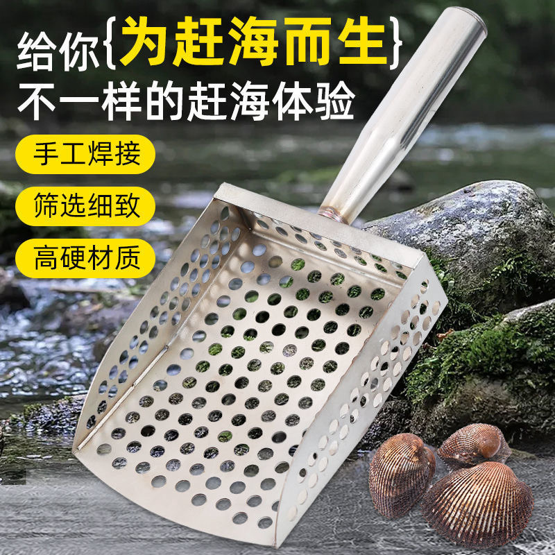 新しい海のふるいシャベル、海辺のコーンビーチ、花貝殻のアーティファクト、ふるいシャベル、砂フィルターメッシュ