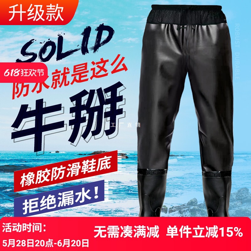 厚みのあるハーフレングスのウェーダー、腰までの長さ、超軽量防水レインパンツ、レインブーツ付き、魚を捕まえるためのレザーフォーク、男性用のリザーバーウェーディングスーツ、ワンピース