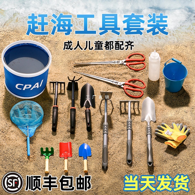 海のツールセット、子供用海辺の砂掘り専用シャベル、カキの熊手、牡蠣、カニのクランプ、アーティファクトと機器、Jinye