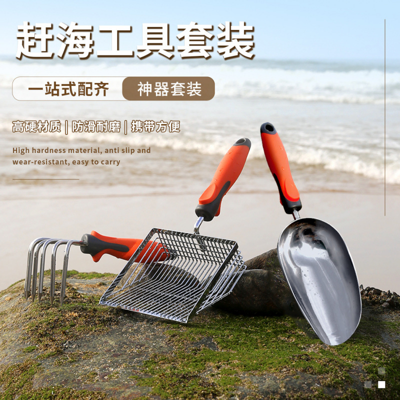 海の道具プロフェッショナルセット、カキの熊手、カニのシャベル、ビーチの貝殻掘り、新しいガーデニング兼用鍬