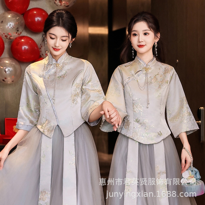 新しい中国風のブライズメイドドレス 2025 夏の新しいスタイルの小さなハイエンドの日常着用可能な姉妹グループのブライズメイドドレス