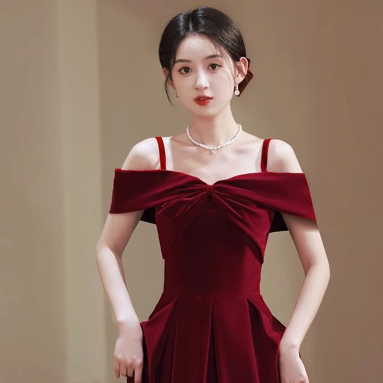 赤い敬酒服2025新型新婦の小柄な婚約ワンピースが帰ってきて高級感があります。