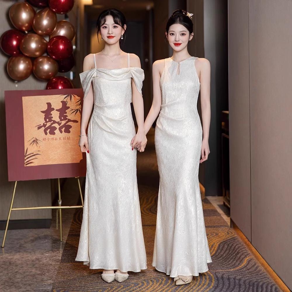 ブライズメイドドレスシャンパンカラー2025新しいハイエンドニッチウェディングシスターグループドレスサテンドレス
