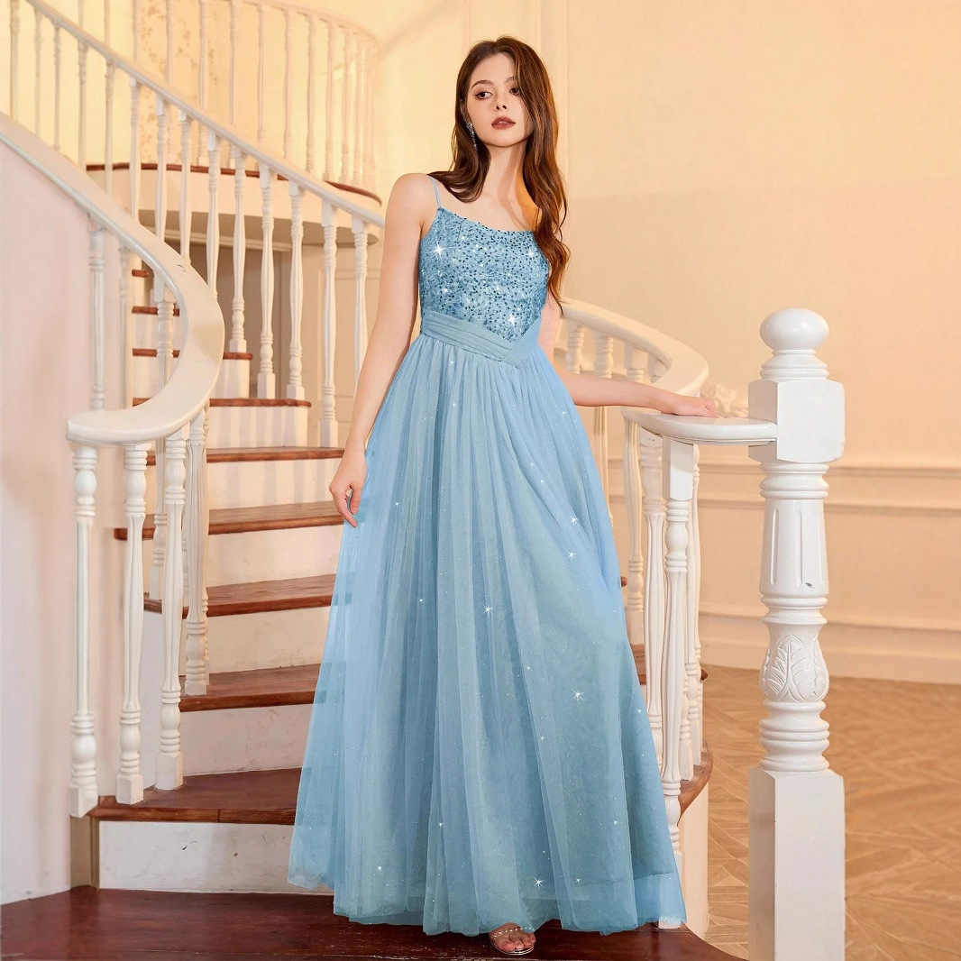 2024国境を越えた欧米の対外貿易の新しい対外貿易の純色のストラップのセクシーなスパンコールの長いスカートのワンピースのフォークのイブニング・ドレス