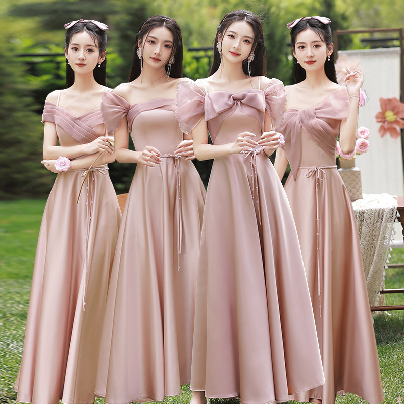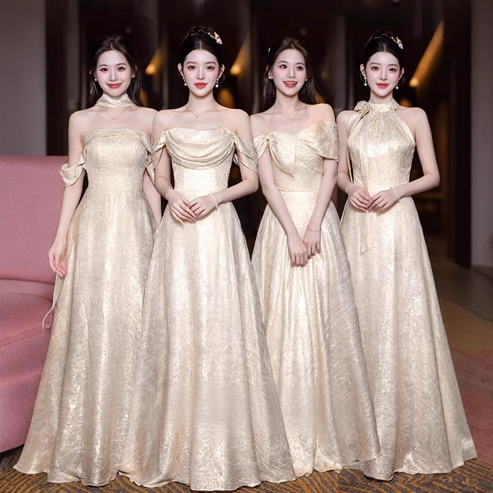 シャンパンカラーブライズメイドドレスは通常着用可能2025新しい夏サテンシスターグループハイエンドニッチ美しい