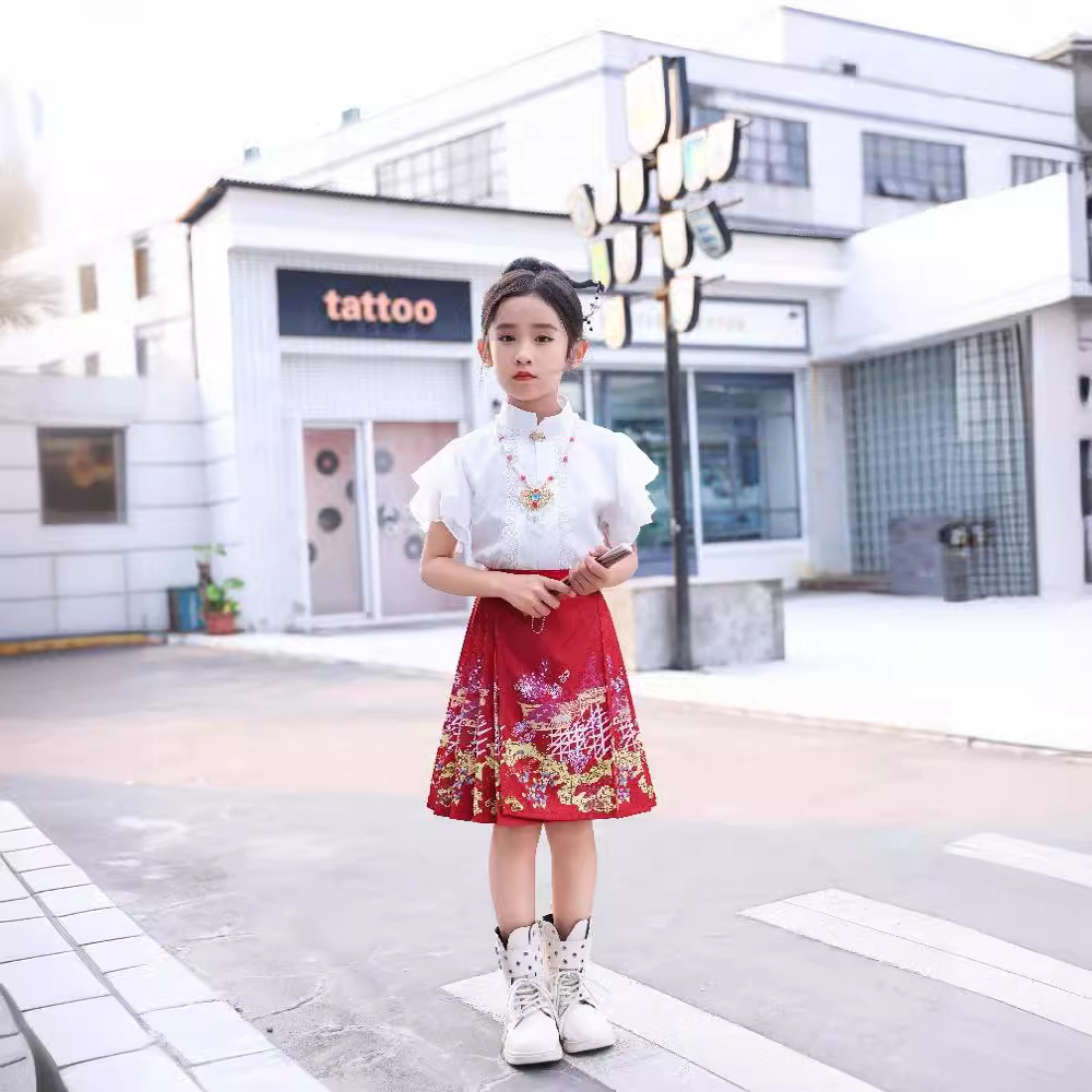 女の子の馬のスカートの2024の新型の子供のスーツの古着の漢服の高端明制の春秋の日常の中国風のスーツ