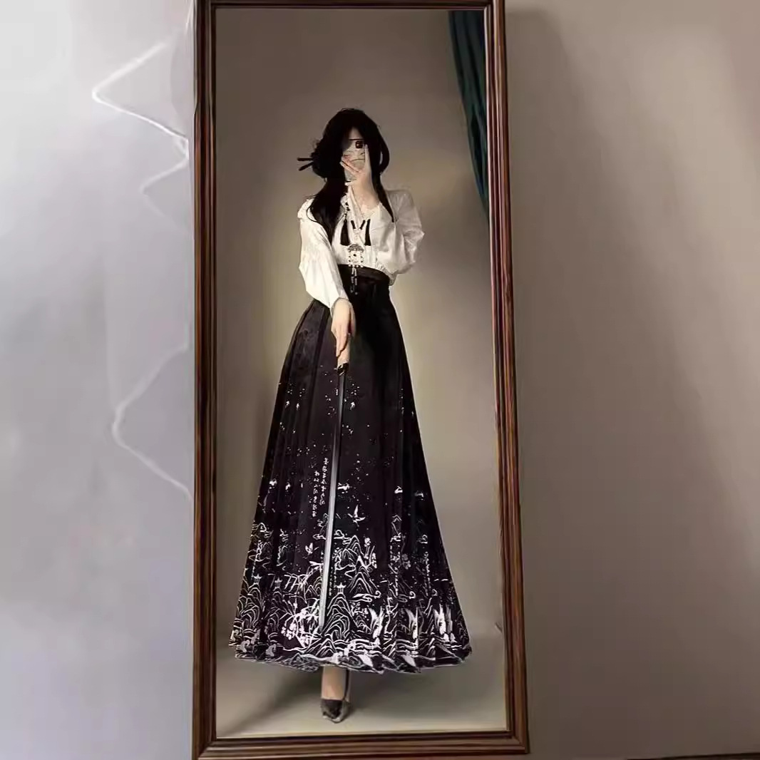 新中国式国風漢服女装オリジナル四季通用外着新型日常着馬面スカート漢元素ロングスカート