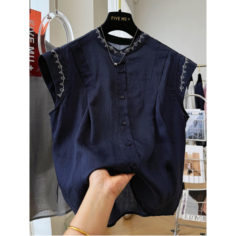 YS8 ノースリーブシャツレディースヘビーウェイト刺繍アウターベストテンセルラミンクシャツ
