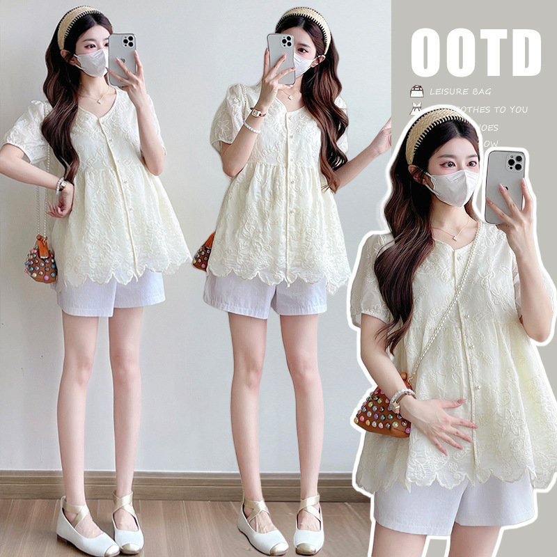 韓国系日常通勤妊婦減齢純色シャツ夏の新型快適な妊婦半袖カジュアル上着