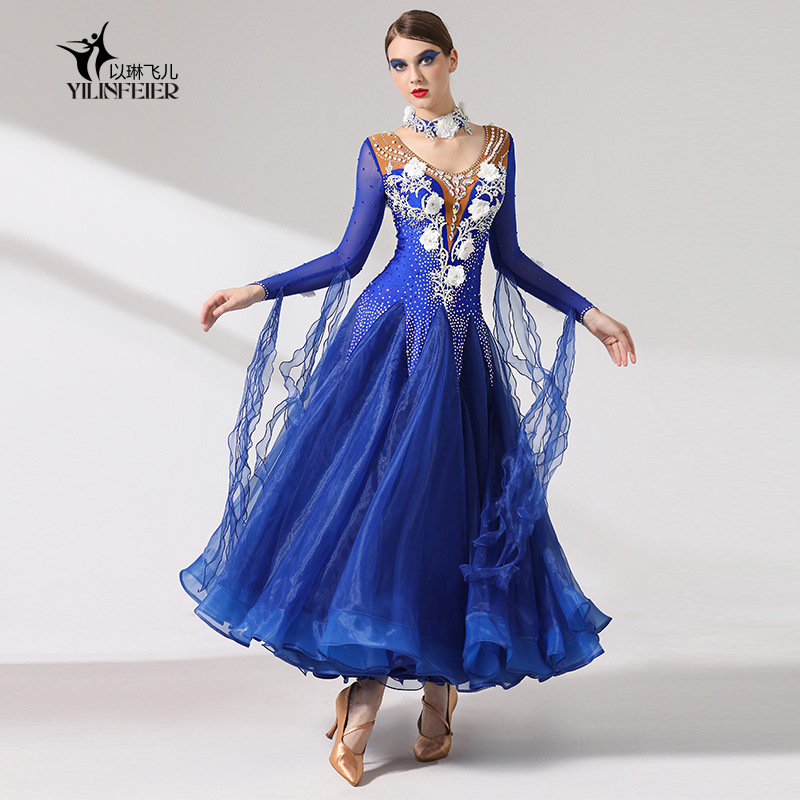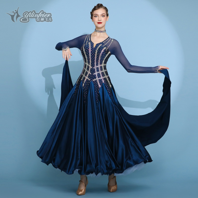 芳華美人藍ロマン優雅摩登舞ワンピースs7061国標舞ワルツ衣装演出服