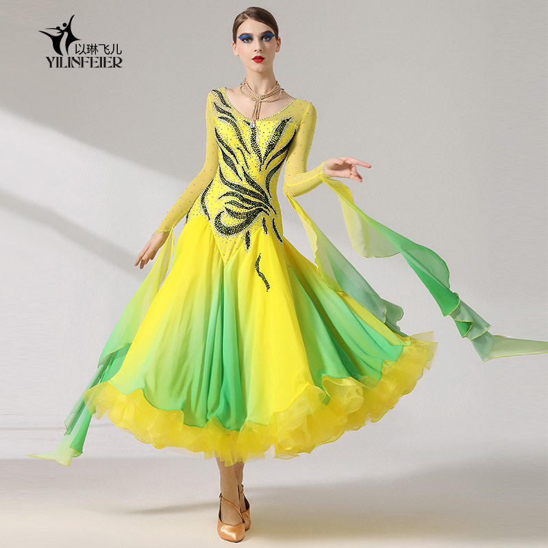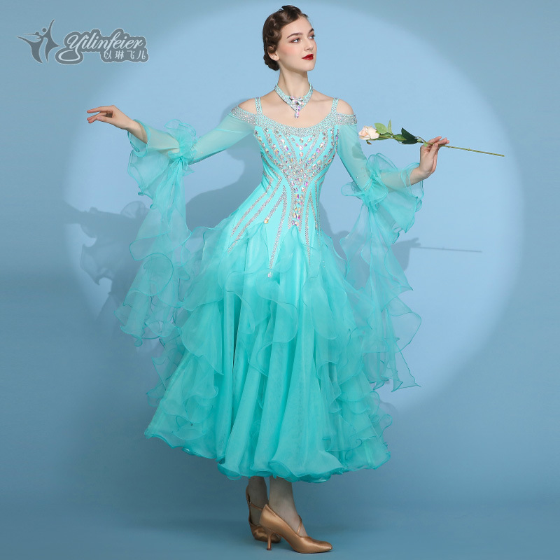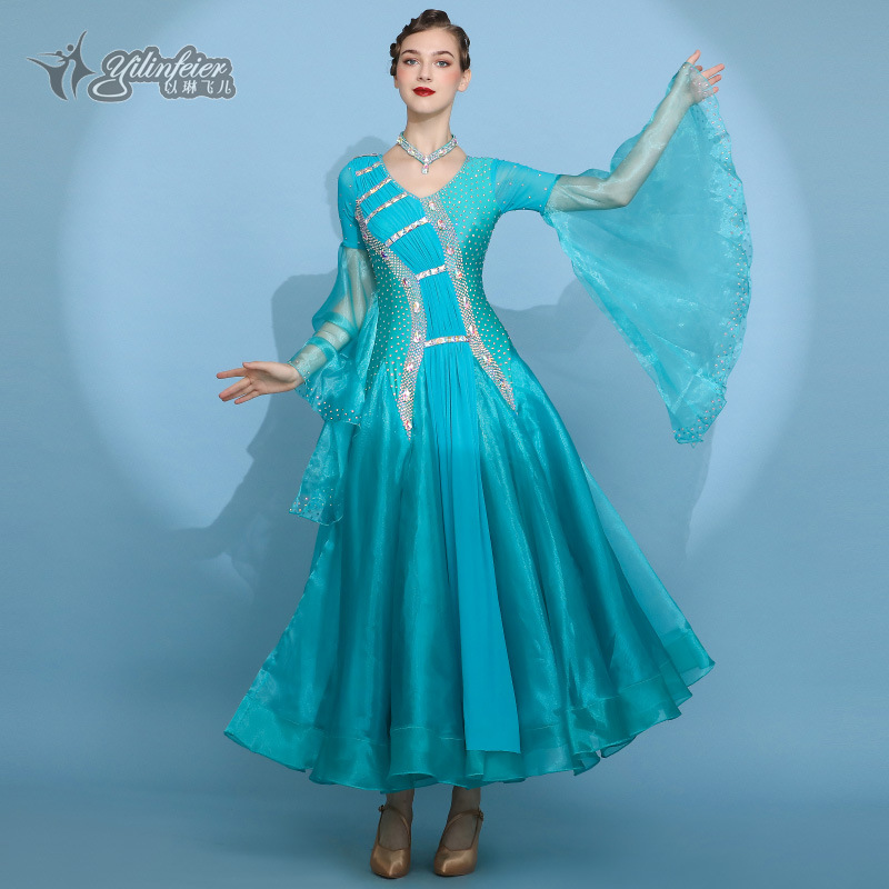 媚羽軽やかなパラシュート! モダンダンスのワンピースの国標舞MY895社交ダンスのワルツのダンスの服装