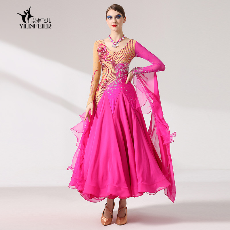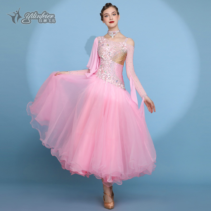媚羽粉霧チューリップ! モダンなダンススカートMY894国標舞服装ワンピースのワルツのダンス服の新型