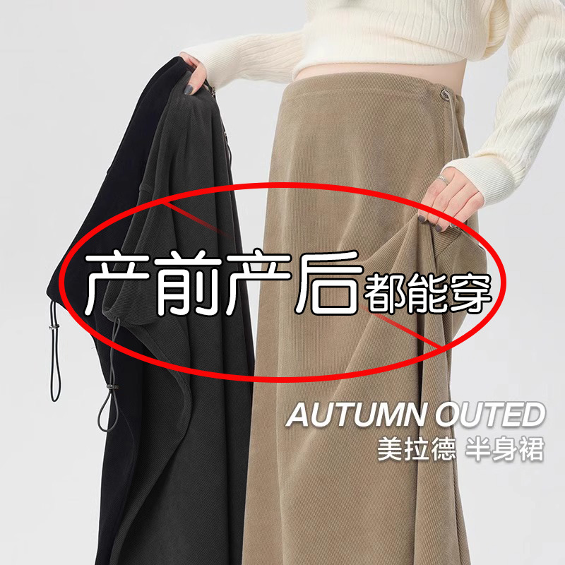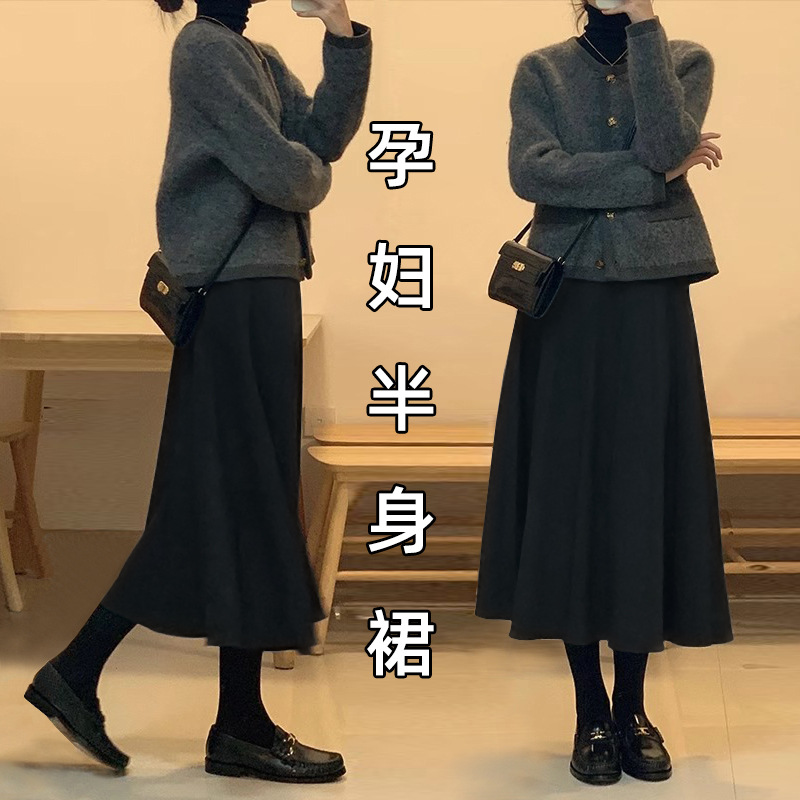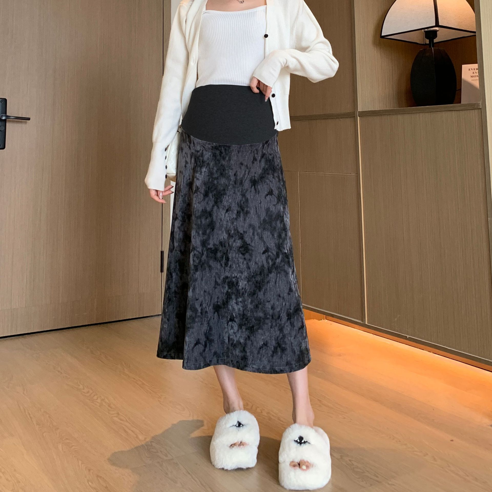 現物妊婦の半身スカート秋冬にベルベットのもち米スカート2024秋冬に腹を立てて魚の尾の妊婦のロングスカートを合わせます。