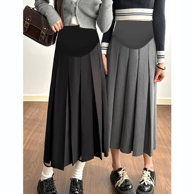 2024秋冬 三宅撚糸ローマ風韓国版プリーツスカート ロング丈 お腹を覆うゆったり妊婦用ロングスカート