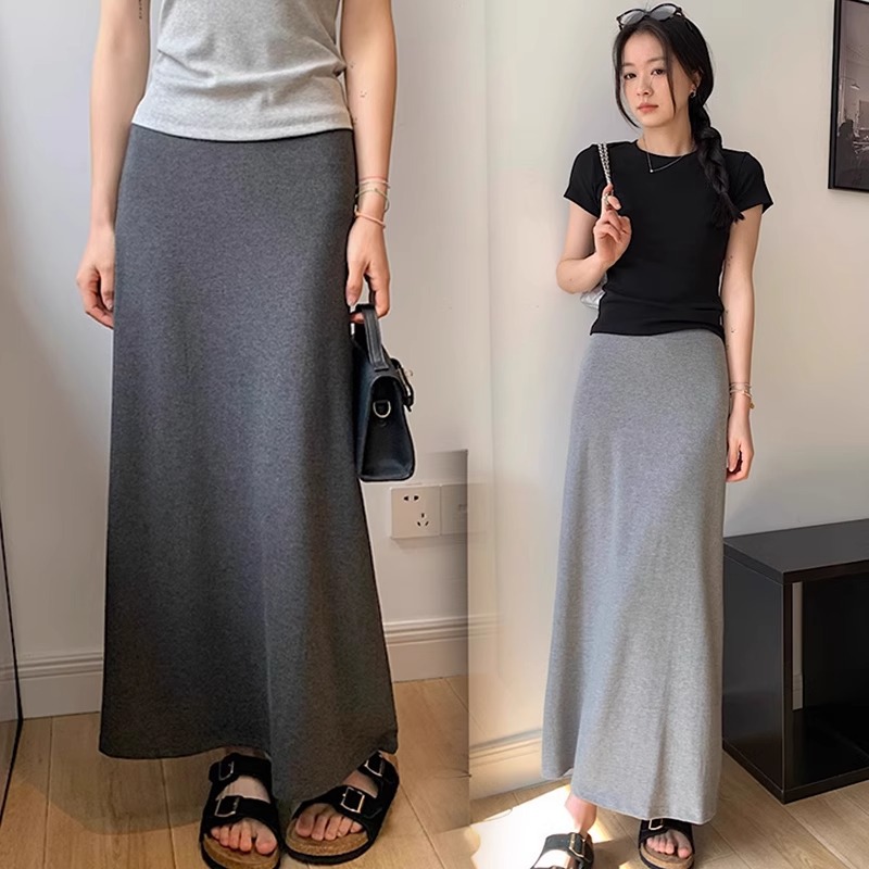 妊婦用ニットスカート、春夏薄手、妊娠中、小柄な人向けグレーストレートヒップカバーロングスカート