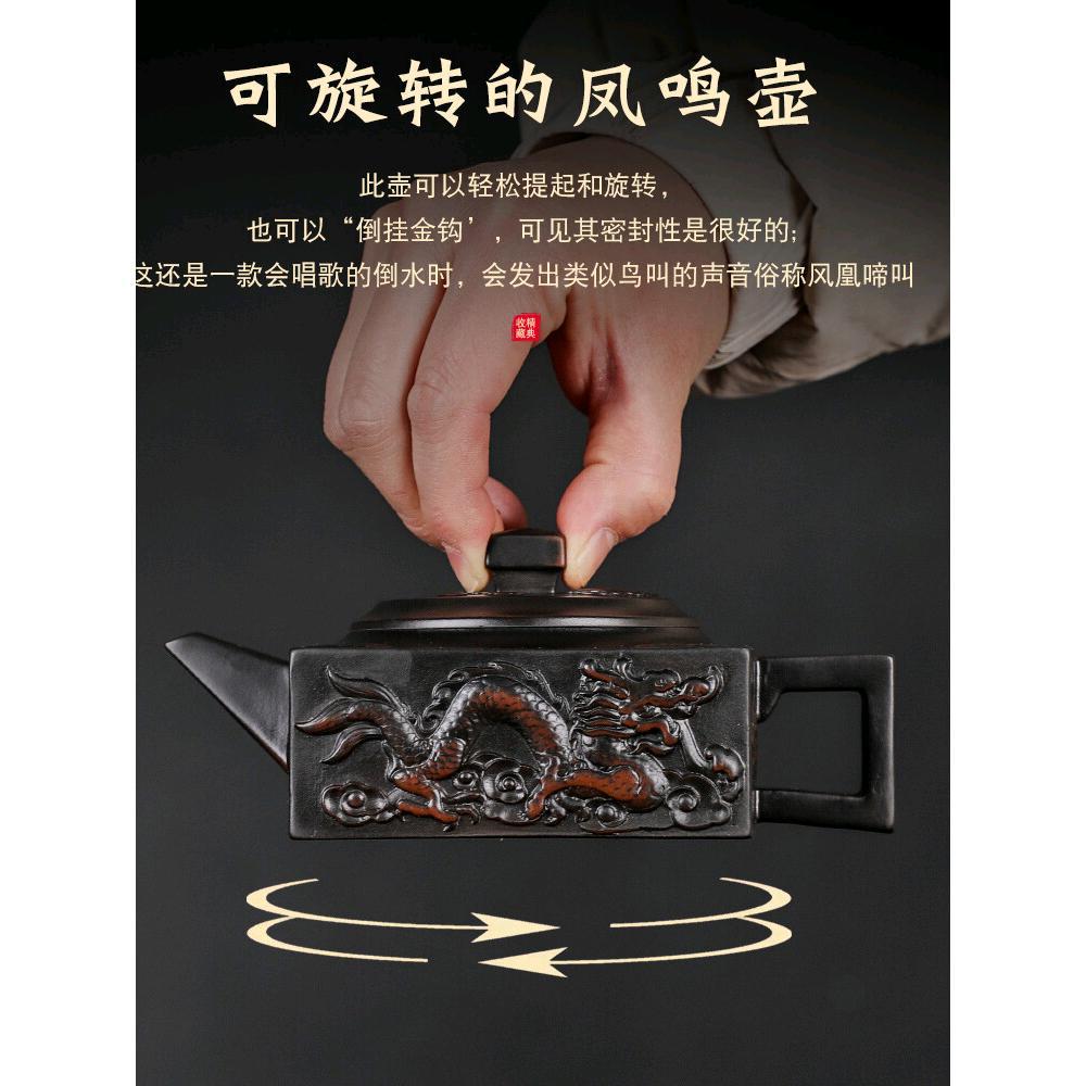 中国式建水紫陶純手作り鳳鳴壺四方龍尊大容量ティーポット茶道具家庭用逆掛け回転可能