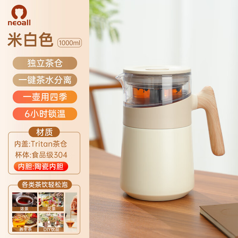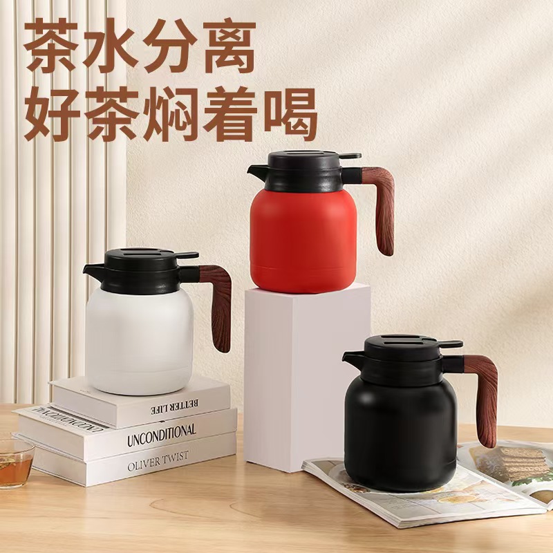 大容量木目ハンドルオフィス茶水分離シチューティーポット家庭用ポータブル断熱ポットポータブルつや消しテクスチャ