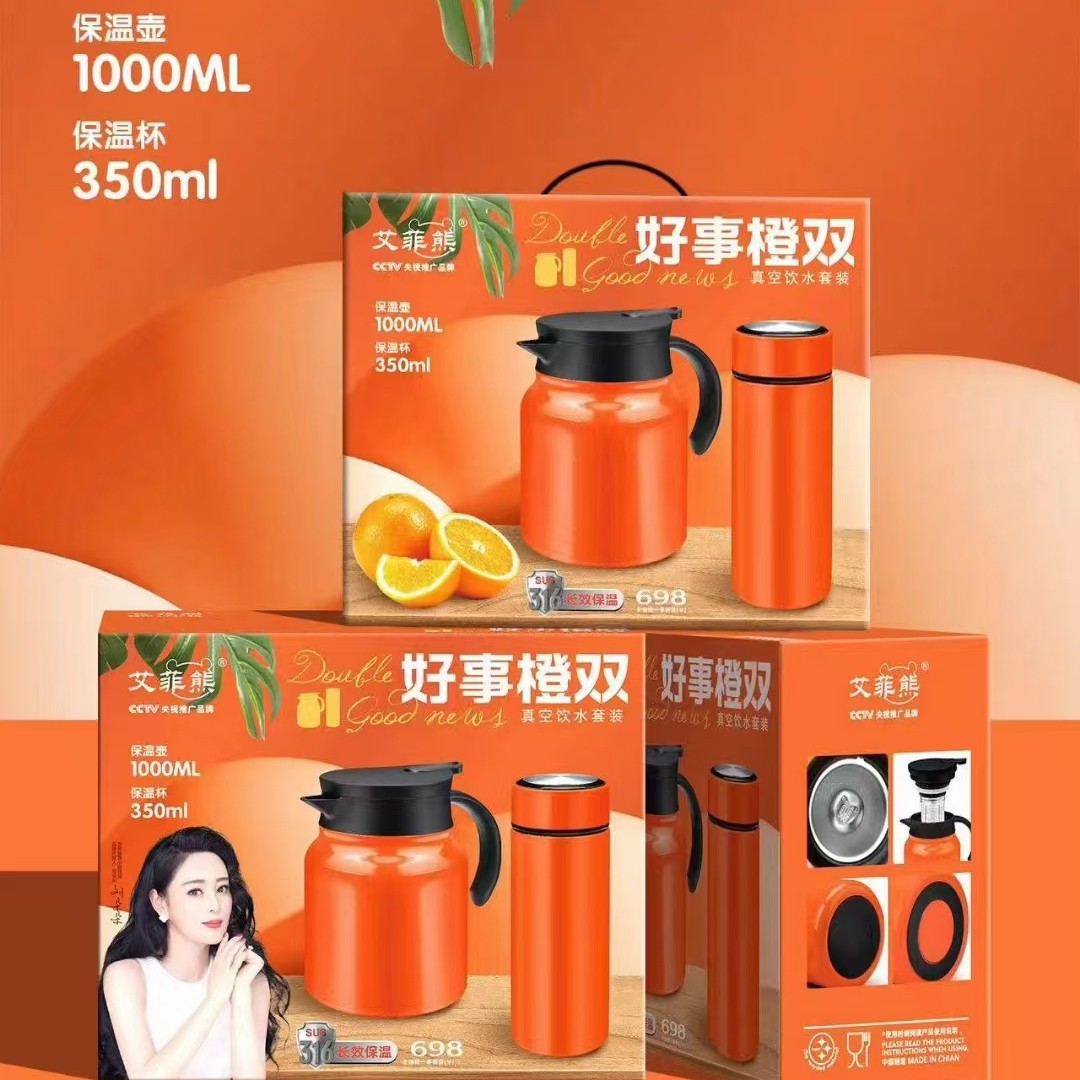 艾菲熊好事橙双真空保温カップ壺セット蒸茶ポット高颜値大容量イベントプレゼント