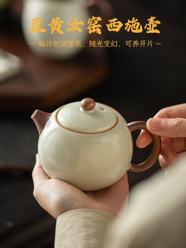 豆黄汝窯ティーポット西施壺陶磁器家庭用ティーポット