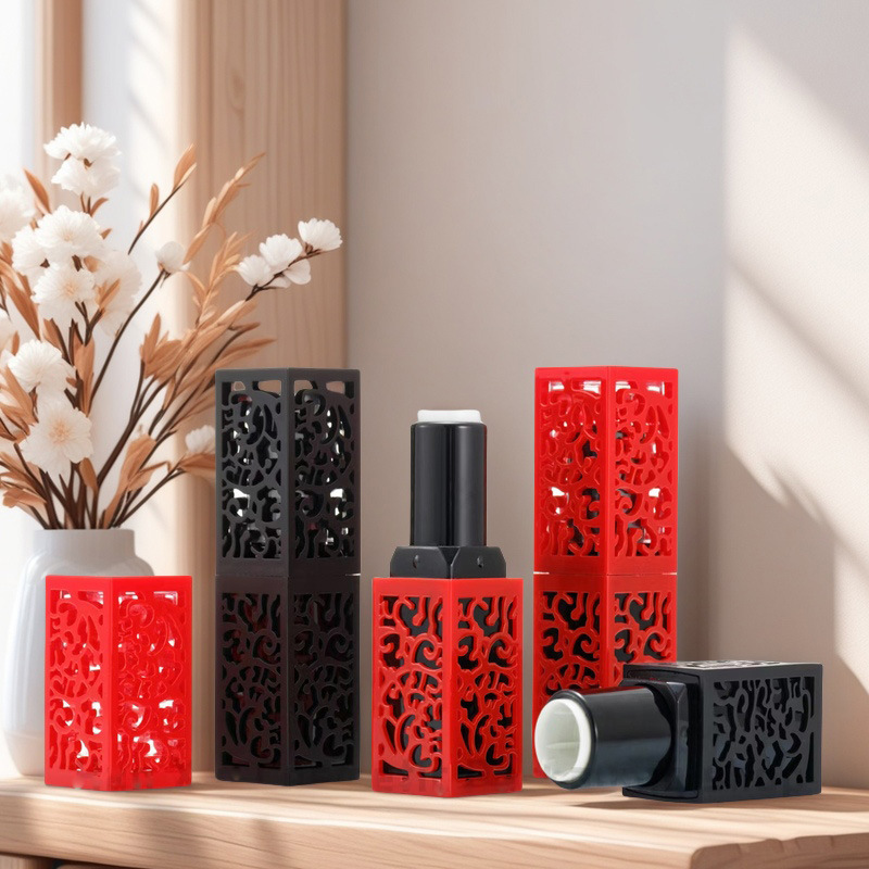 現品の完成品は口紅の空管の空殻の復古的な透かし彫りの四角形の空瓶の包装材の口紅の空管の包装材の卸売りをプラスします。