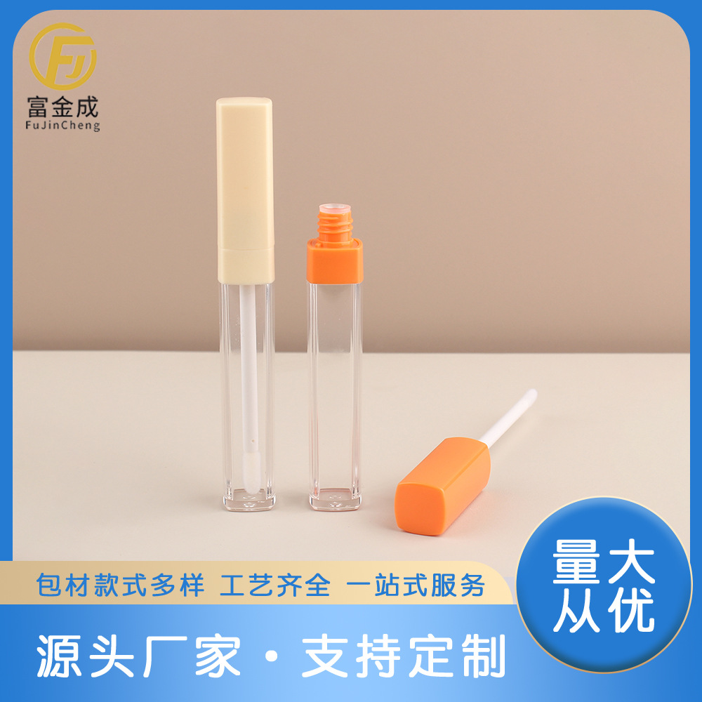 大毛ブラシ角型リップカラー管カスタム透明プラスチック厚肉リップ釉薬管化粧品包装材分注瓶口紅管