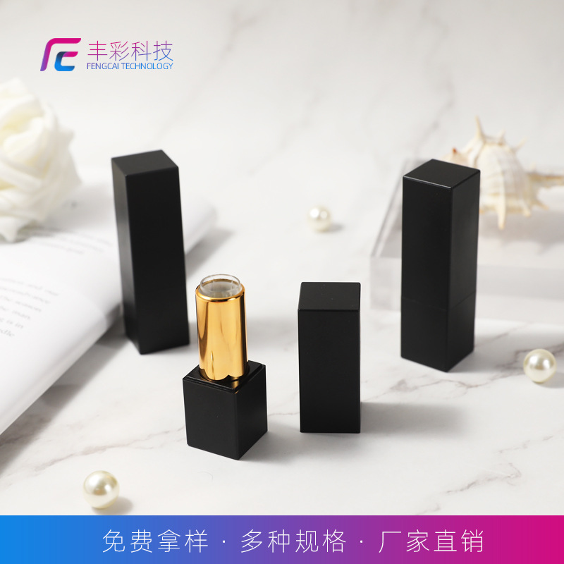【カスタマイズ】角型黒口紅管平口磁気ボタンリップグロスdiy自作潤唇膏管化粧品包装材
