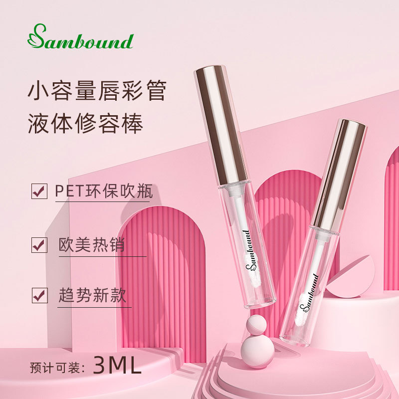 カスタマイズされた 3 ミリリットル小容量リップ釉薬液体詰め替えボトルシルクスクリーンロゴ透明射出ボトル工場卸売