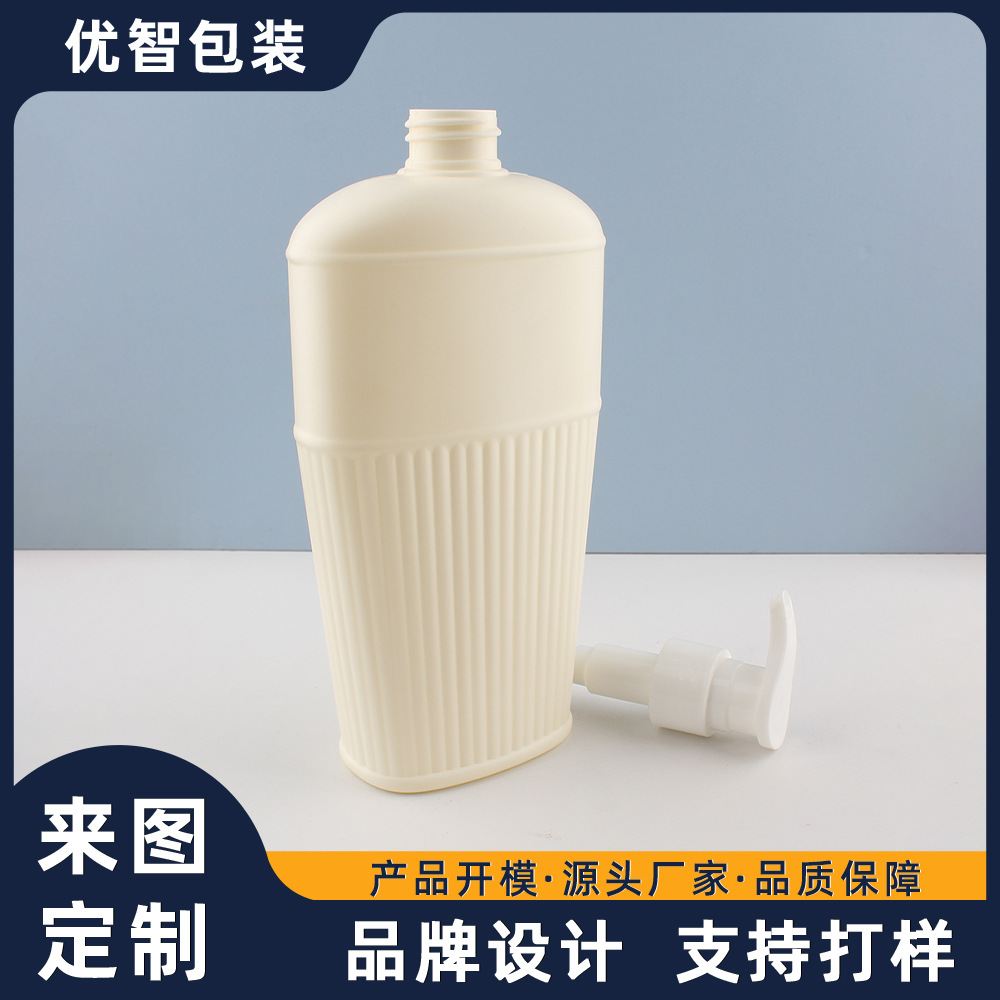 カスタマイズされたベージュラインストライプ洗浄ボトルフラットボトル包装材ラウンドショルダー 600 ミリリットルシャンプーシャワージェルボトル日用化粧品