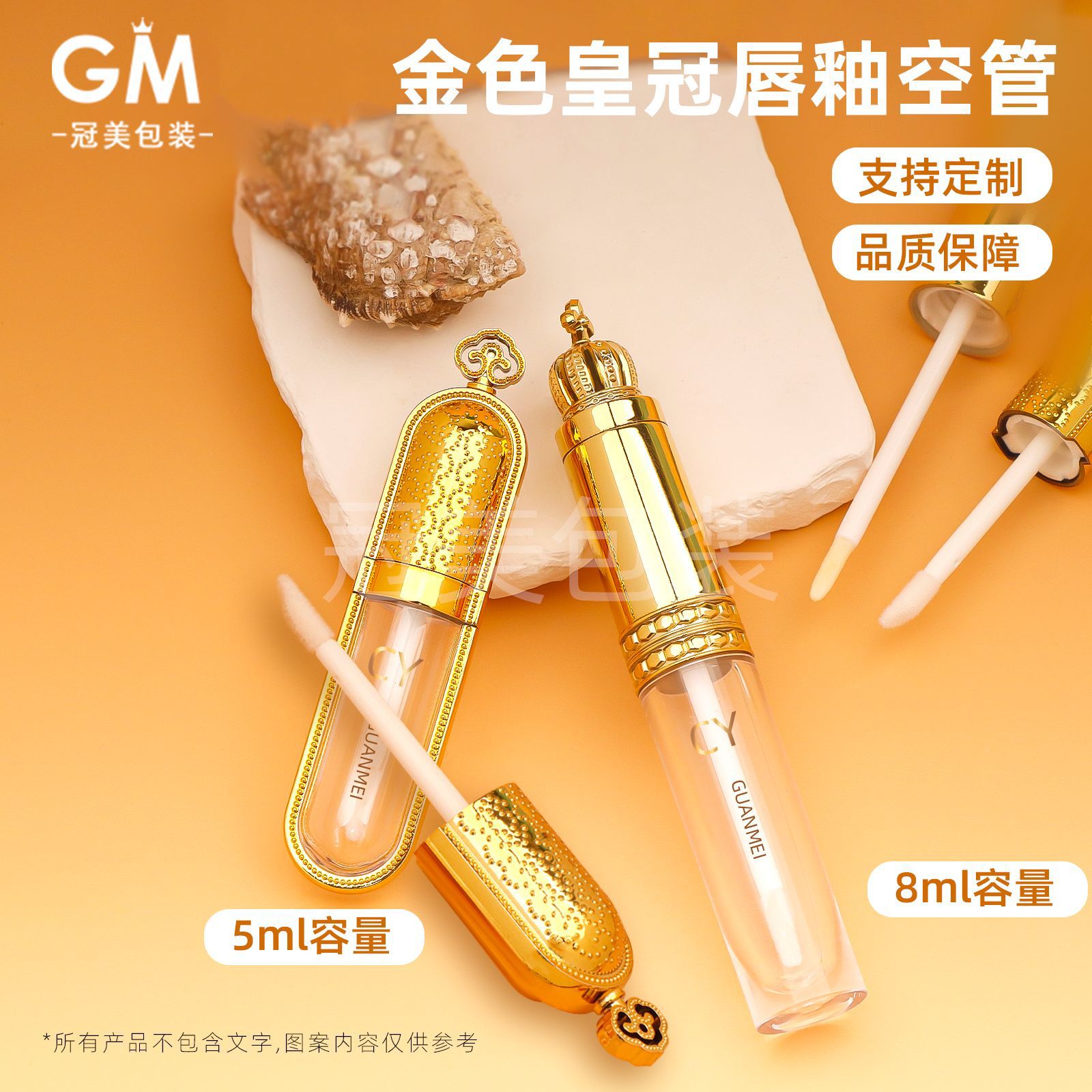 メーカーカスタマイズされたゴールデンクラウンリップグレーズ空チューブハイエンド透明リップグロスボトルメイクアップ自家製リップグロスボトル包装材料