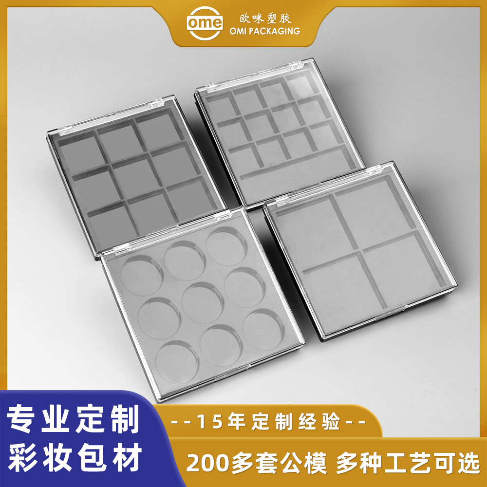 欧miプラスチックの化粧品の包装材の四角形のハイライトのアイシャドーの頬紅は箱を分けてカスタマイズしてアイシャドーの皿の空盤の粉の箱の包装材を注文します。