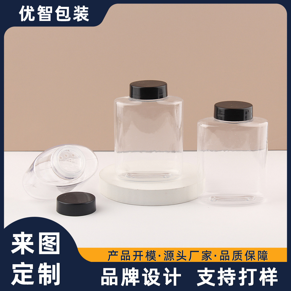 加工されたカスタム 125ml65ml 透明メイクアップパウダールースパウダーボトル、グリッド付き真珠光沢のあるパウダーボトルあせもパウダーボトル