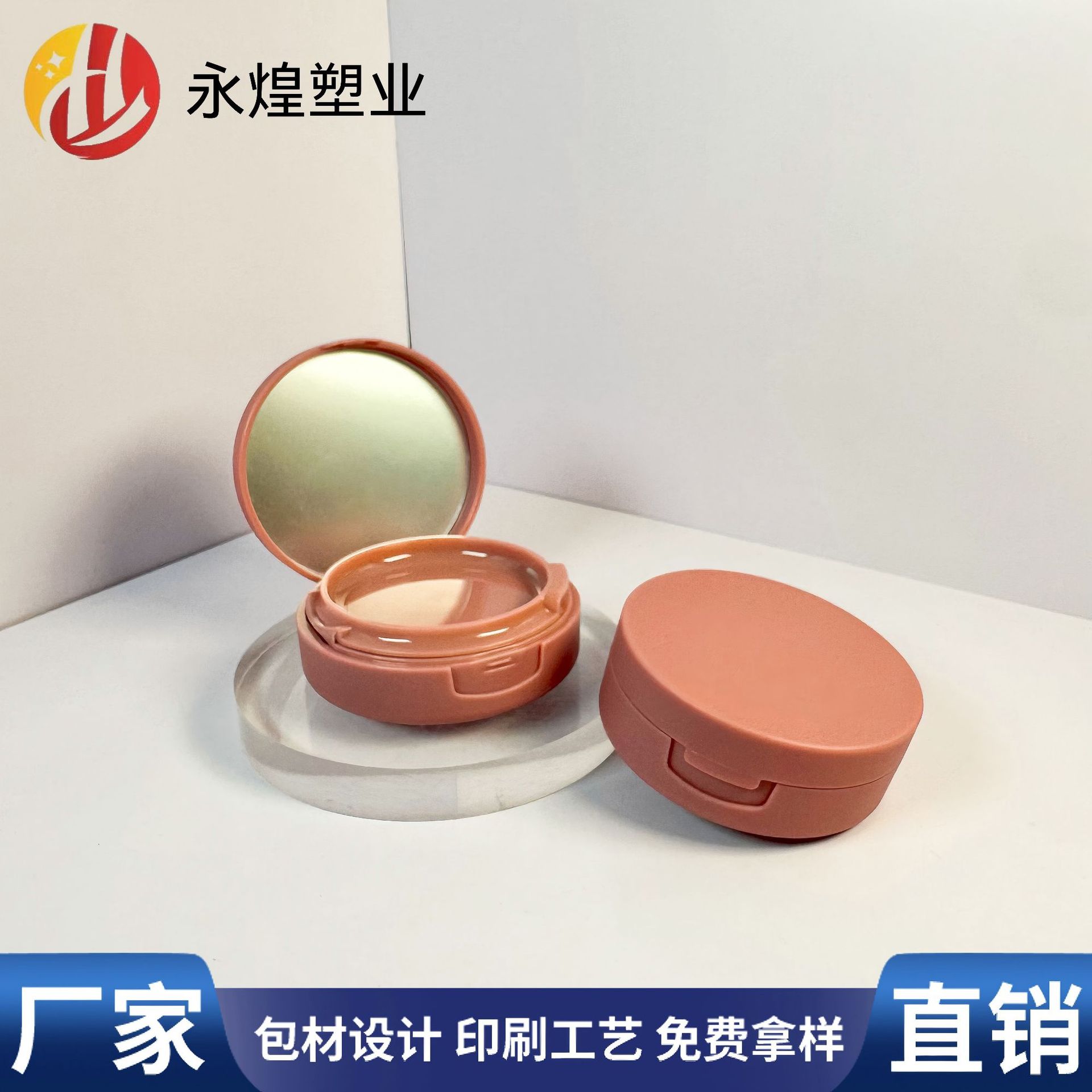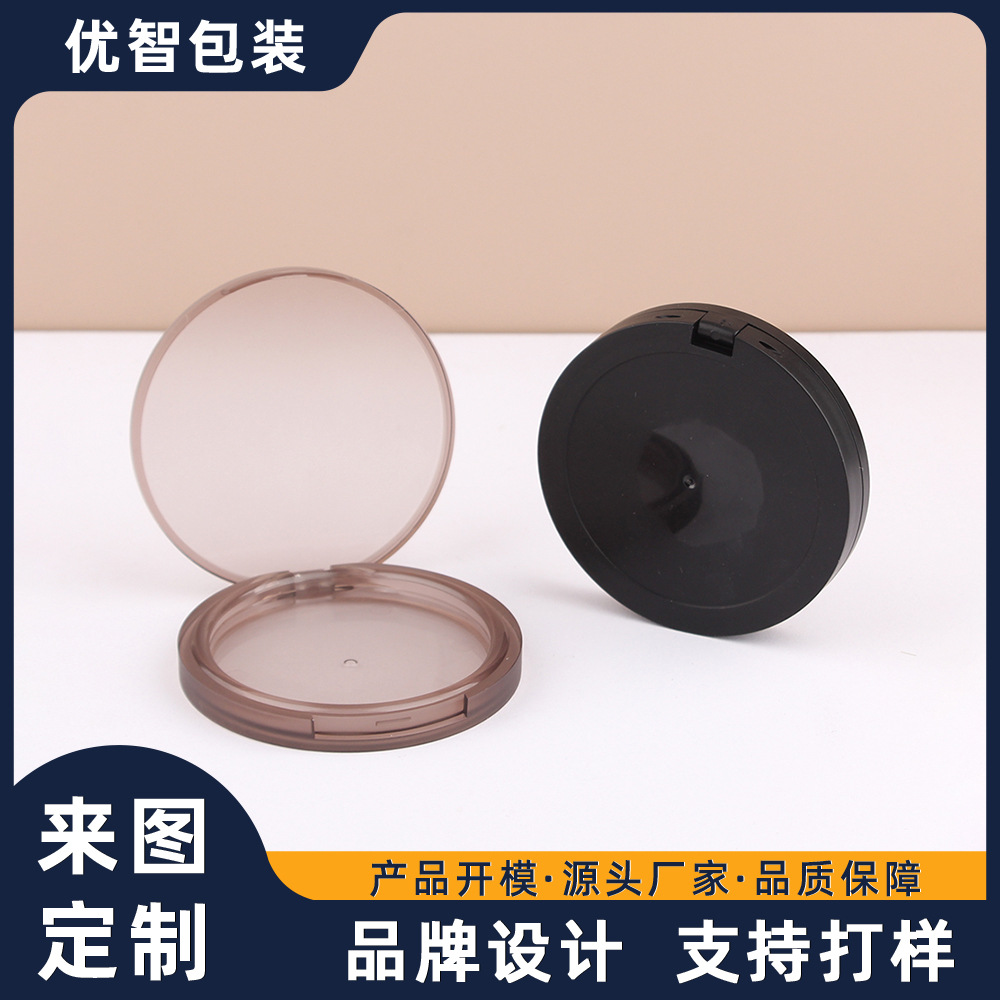 カスタマイズされたラウンドパウダーパック、ポータブルフリップカバーバックルブラッシュボックス、ミラー付きハイライターアイシャドウボックス、ロゴ印刷可能