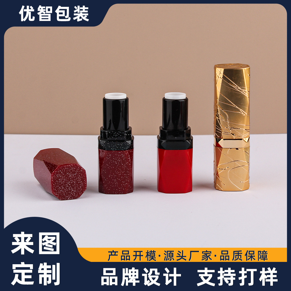 現物金銀圏赤色黒色彫刻口紅空管角型リップクリーム口紅管