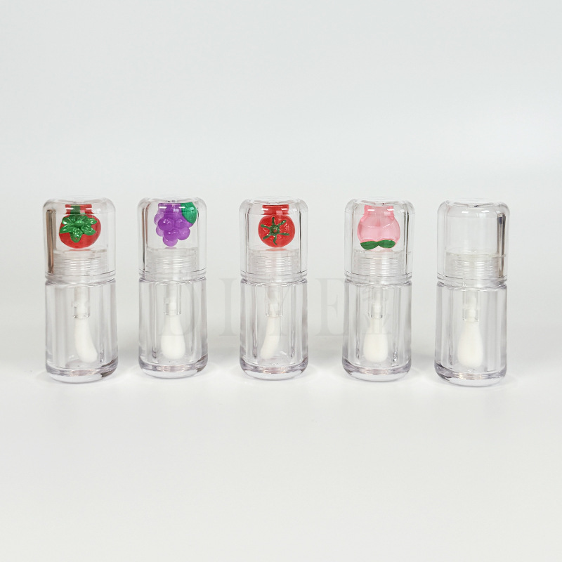 カスタマイズ可能な透明なラウンドフルーツリップグレーズチューブ包装材液体リップグロス大型ブラシヘッド厚壁空チューブ 4 ミリリットルリップ泥チューブ