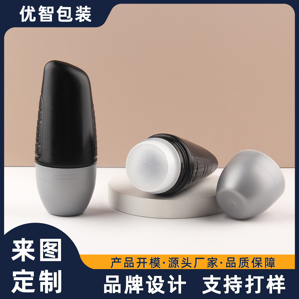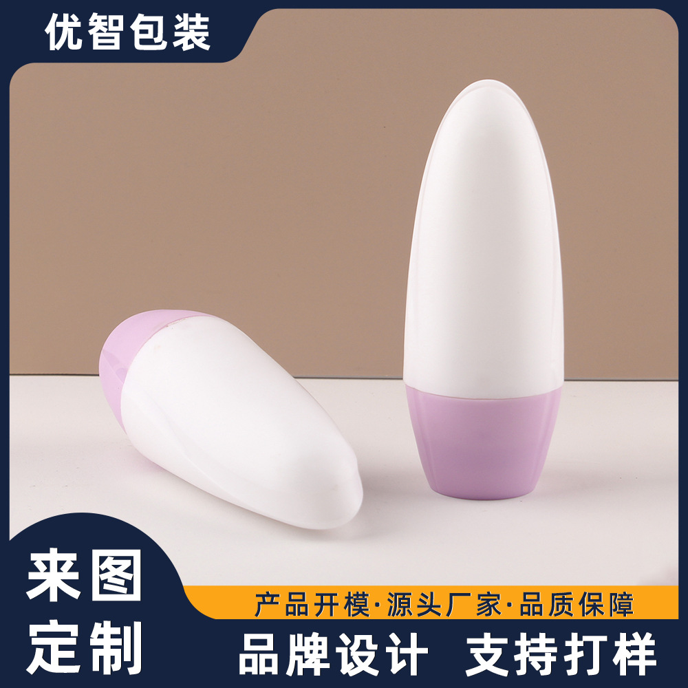 カスタマイズされた50mlローラーボールボトル、ローラーボールプラスチックボトル、デオドラント詰め替えボトル、丸いガチョウの卵型ローラーボールボトル包装材の加工