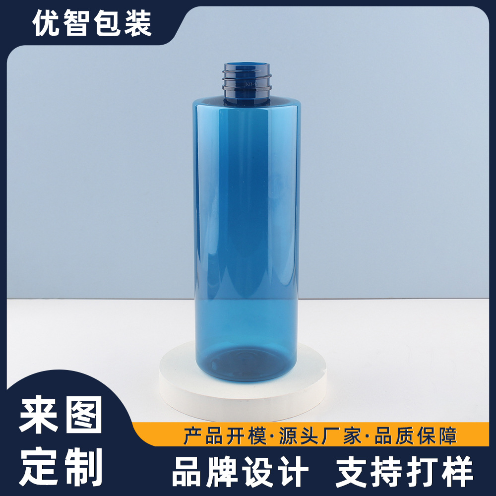 カスタマイズされた 420 ミリリットルシャンプーシャワージェルボトルラウンド透明ブルーケアボトルボディローションボトル