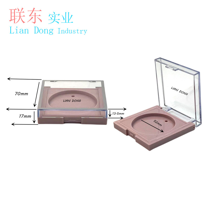 聯東実業の四角形のプラスチックの箱の粉の餅の箱の包装材の外の方の円の単色のチークの包装の透明なアイシャドーの箱