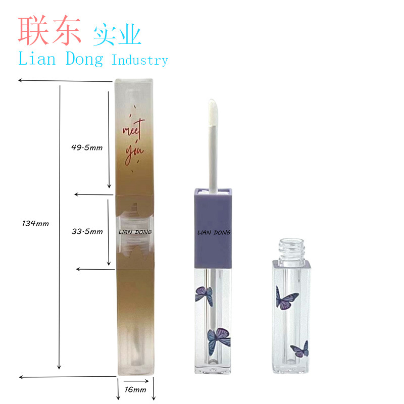 聯東実業の新型二重角型4ml唇釉薬管空管透明多色唇カラー管化粧品包装材