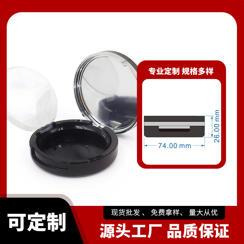 カスタマイズされたラウンドパウダーパック、ポータブルフリップカバーバックルブラッシュボックス、ミラー付きハイライターアイシャドウボックス、ロゴ印刷可能