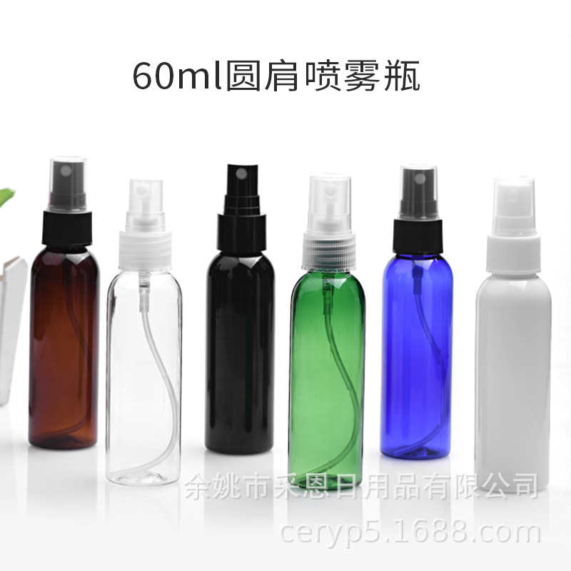 60mlミリリットルラウンド肩スプレープラスチックスプレーポット小さなスプレー细かいミスト化粧品分注ブラウンブルー白ブラック