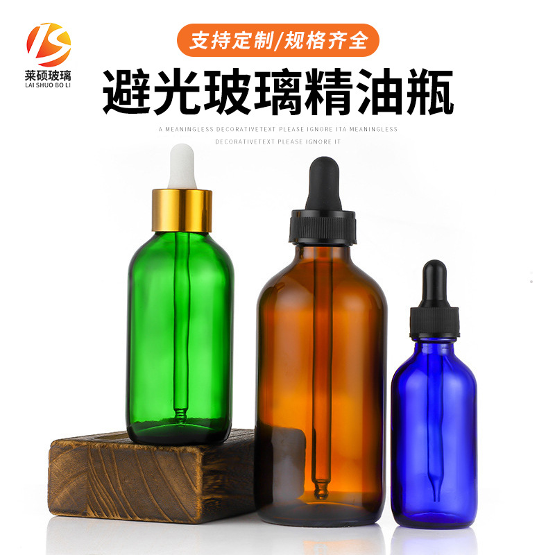 現物は青いゴムの点滴管の精油の瓶の茶色の化粧品を供給して瓶の精華の原液を分けてガラスの瓶を遮ります。