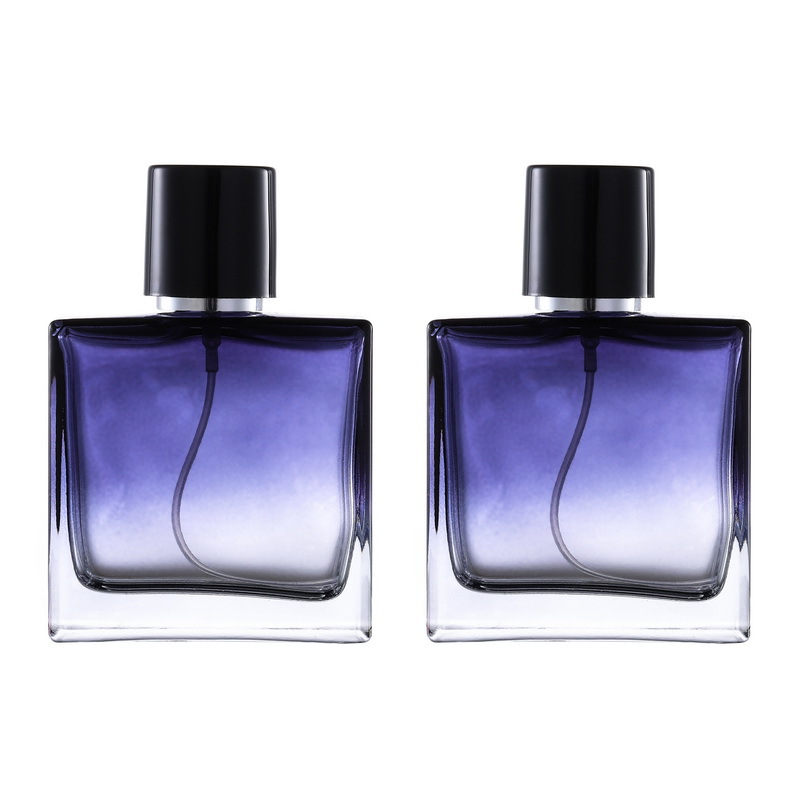 シンプルなカラフルな厚手のガラス香水瓶、透明な正方形のボトル50ml、ポータブル化粧品香水スプレーボトル