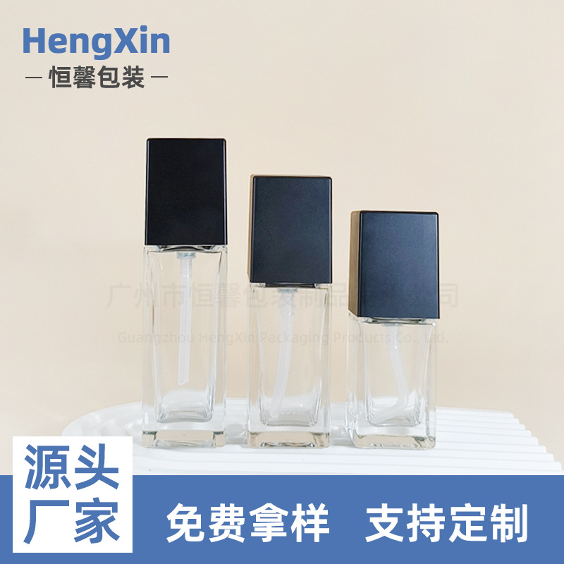 30 ミリリットルエッセンスローションボトルスクエアプレスリキッドファンデーションガラスボトル BB クリームアイソレーションクリーム詰め替えボトルサンプルボトル卸売