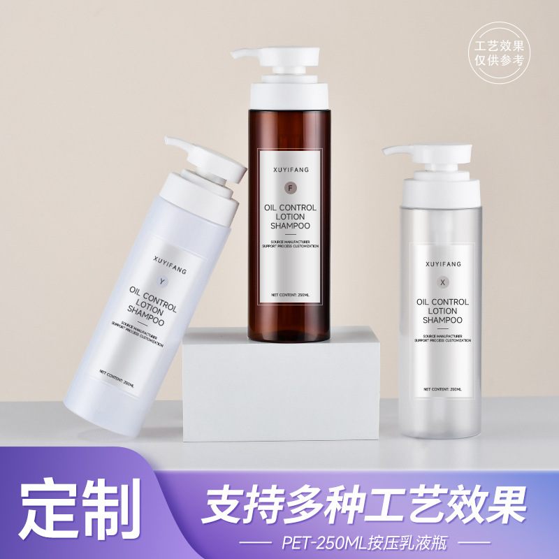 メーカーカスタム透明平肩押圧ローションボトルクロスボーダー専用ボディボトルpet 250mlシャンプーボトル