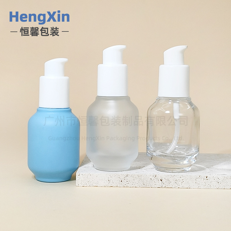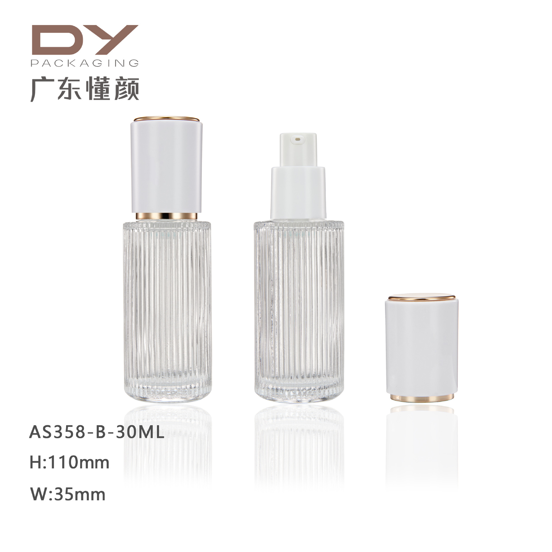 スポット 30 ミリリットルストレートラウンドローションエッセンスボトル水乳液プレスガラス詰め替えボトルリキッドファンデーションボトルはロゴをシルクスクリーン印刷することができます