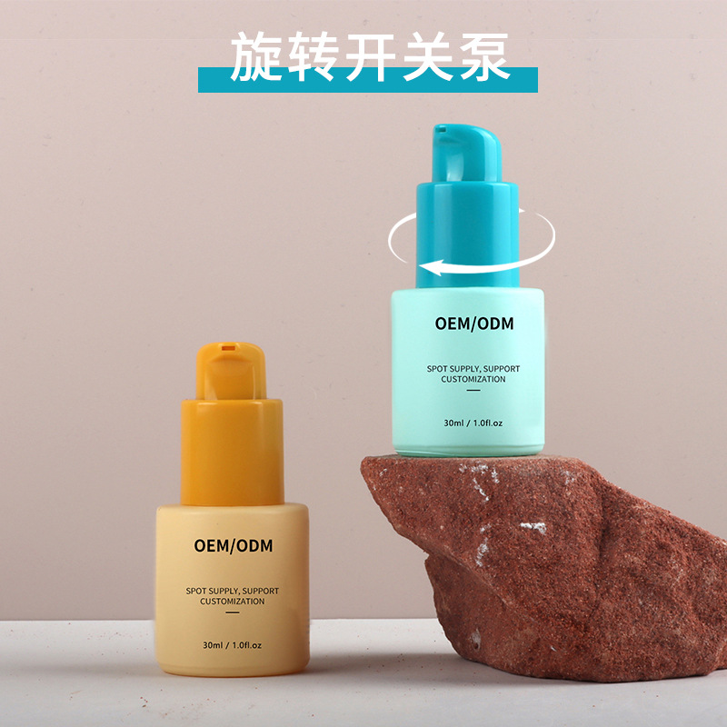 新型異形化粧品分注瓶30ml粉底液瓶押圧ポンプ瓶精華液瓶厚い底ガラス瓶