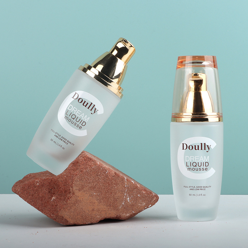 新品50mlローションボトルガラス厚い底ファンデーションボトル水ミルクボトル透明プッシュポンプボトル化粧品包装材