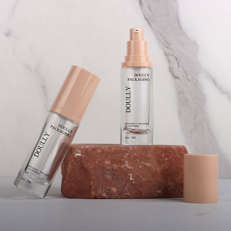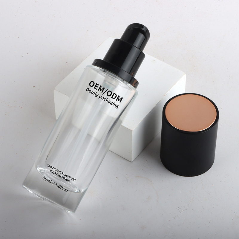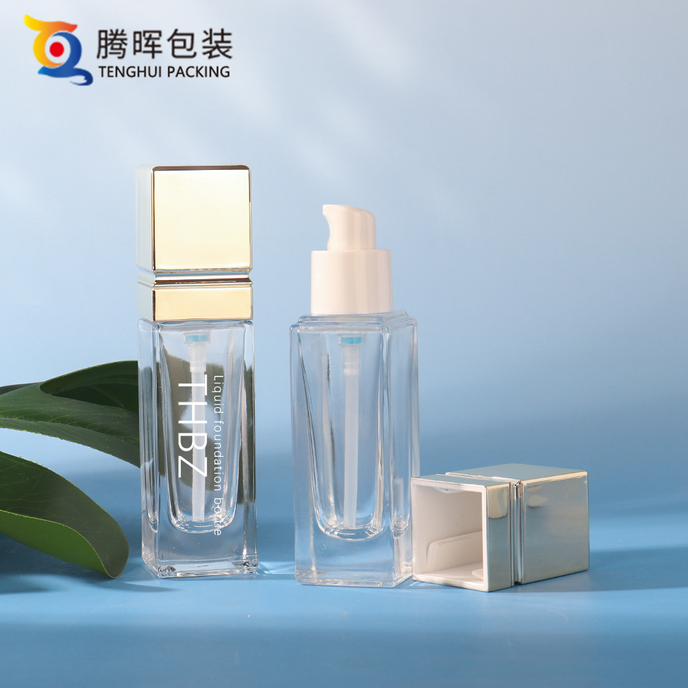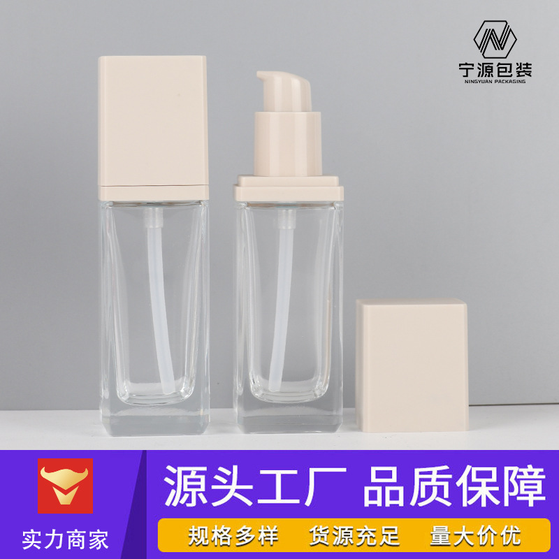 30mプッシュポンプボトルスプレー瓶透粉底液瓶ガラス厚い底角型ローション瓶明白色水乳瓶