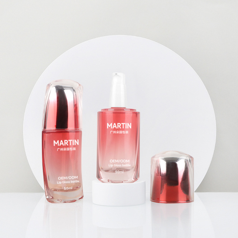Duoli 新しいグラデーションレッドガラスプレスポンプボトル 50 ミリリットル厚底エッセンスローションボトルメーカーはロゴをカスタマイズすることができます