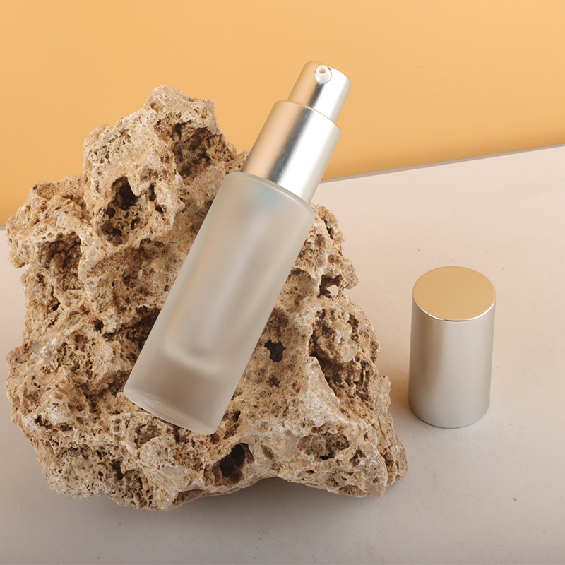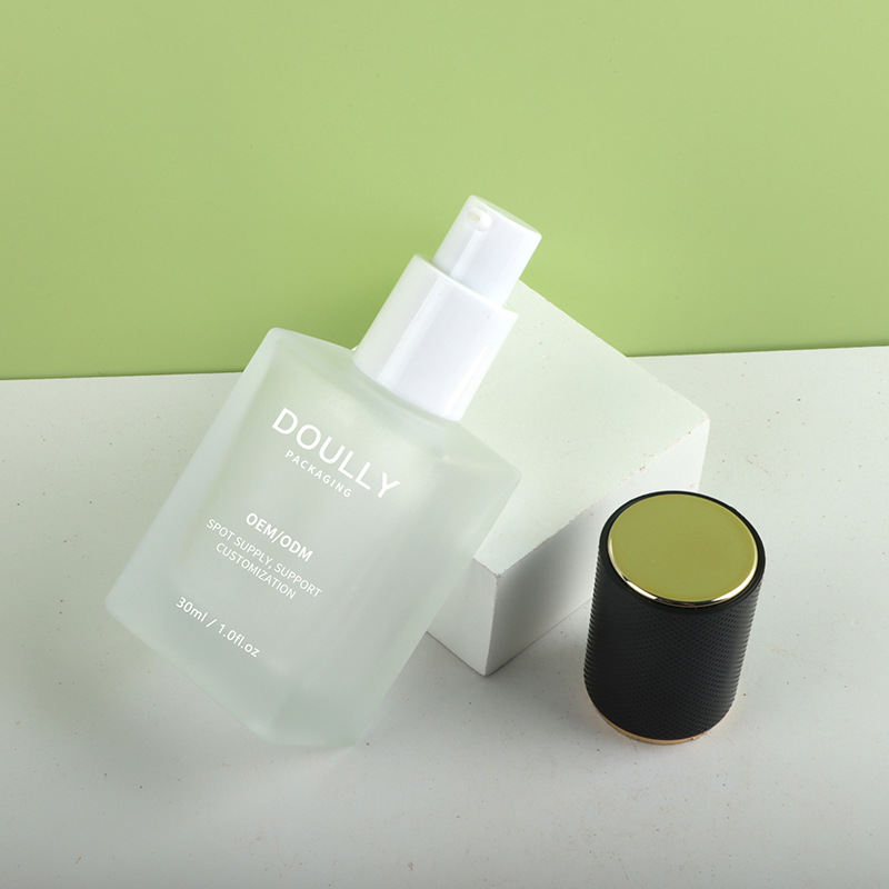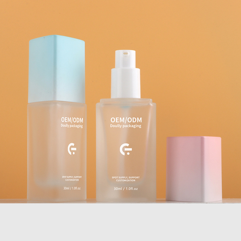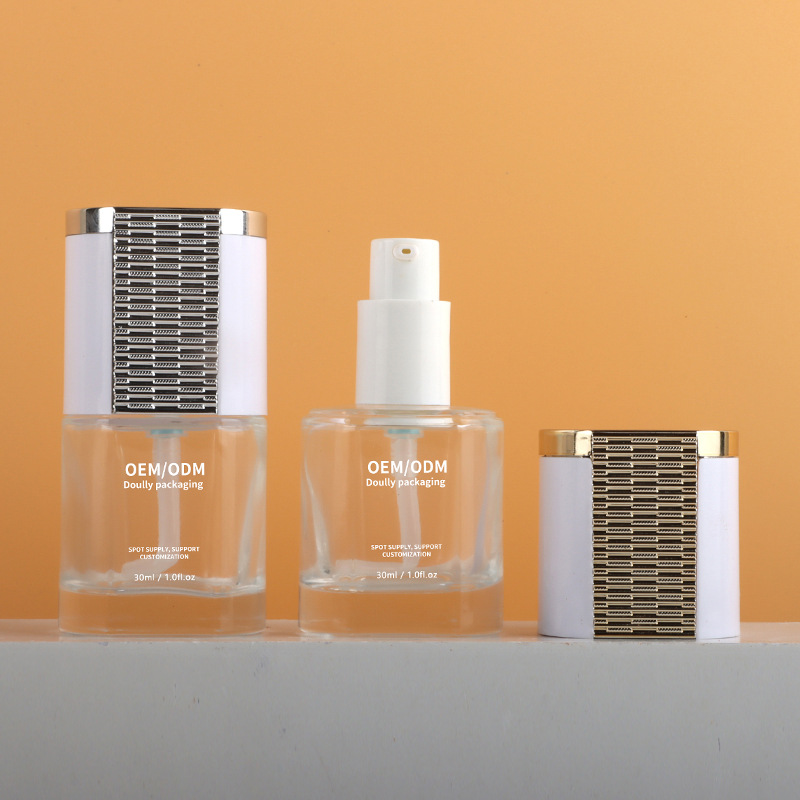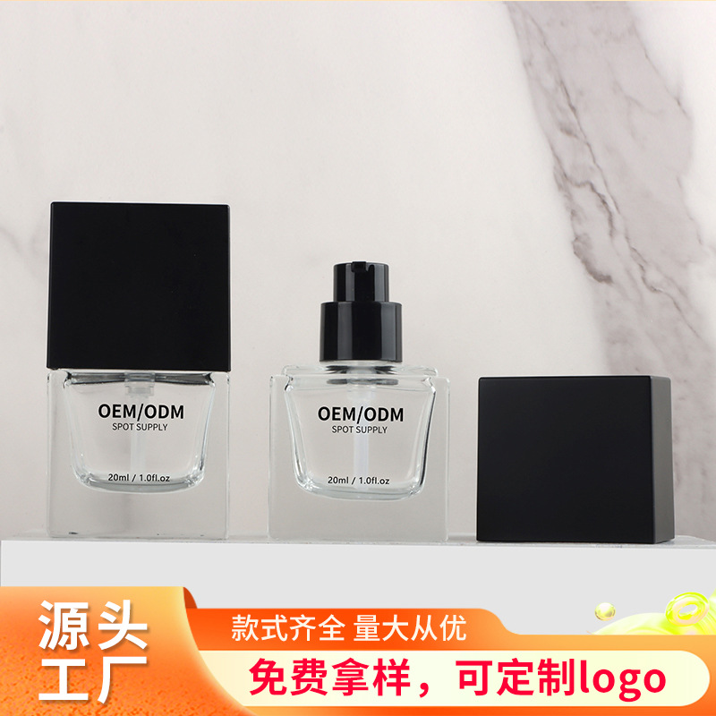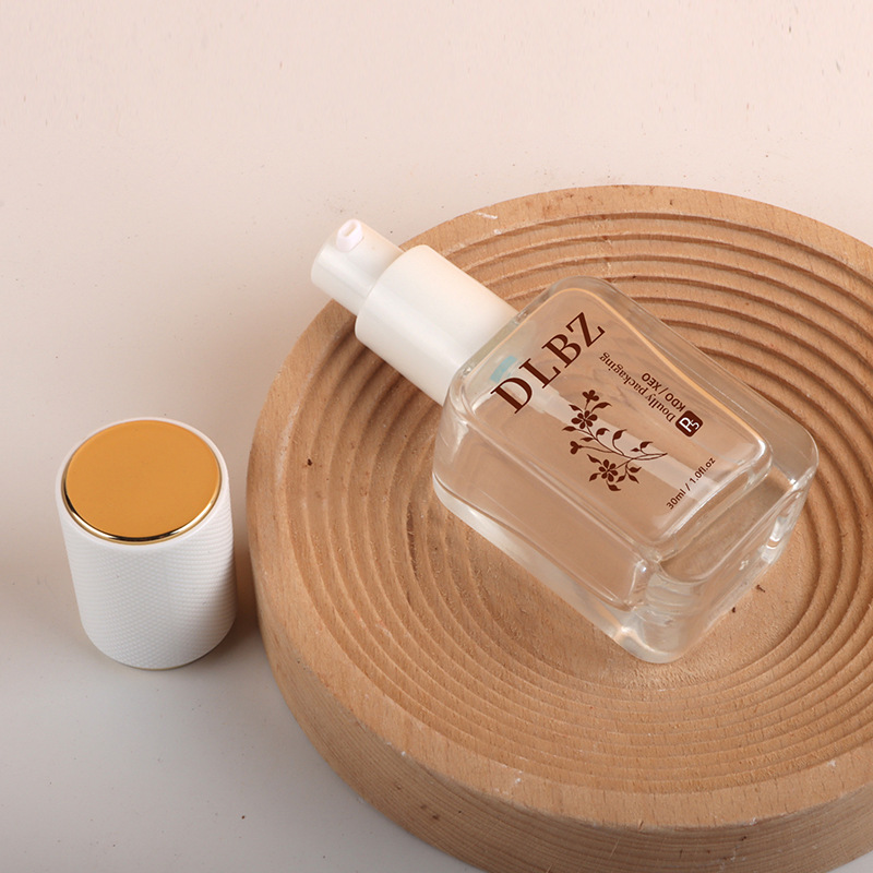 30m透明な白いファンデーションボトルガラス厚い底角型ローションボトル水哺乳瓶押しポンプボトルスプレーボトル